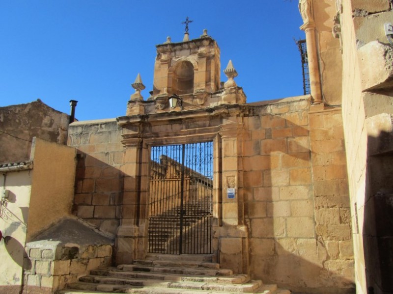 The 16th century also saw the addition of the old Sacristy underneath the tower, and the main entrance (Julián de Alamíquez, 1573) on the southern side of the building, which is in the form of a triumphal arch similar to that of the Colegiata in Lorca. It is flanked by niches decorated with shell designs, and two niches at the top of the arch contain busts of Saint Peter and Saint Paul.