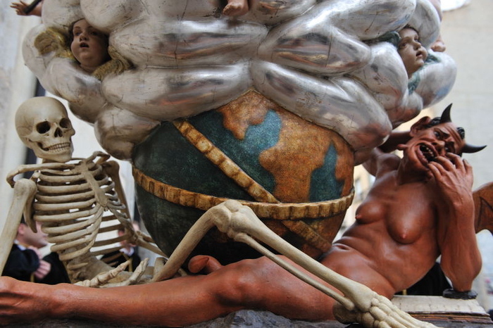 The second part of the procession features the statue of “La Diablesa”, the she-devil, made by Nicolás de Bussy, which is normally on show in the city’s archaeological museum, and is a stunning 17th century masterpiece showing the triumph of good over evil, and the constant conflict of life and death, heaven and earth, God and Satan. To see the statue throughout the year visit the archaeological museum, which is just a few minutes' walk from the cathedral.