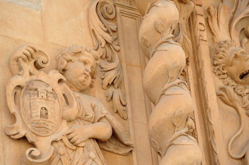 On either side of this main coat of arms are children bearing the insignia of the surnames of Don Juan and Doña Isabel, and at the top of this elaborate piece of stonework is the coat of arms of the Order of Santiago. The four Solomonic columns featured in the tableau are the reason for the palace sometimes being referred to as the Casa de las Columnas.